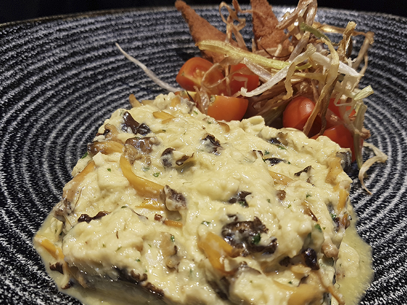 Hongos negros al horno con taquitos de Jabugo